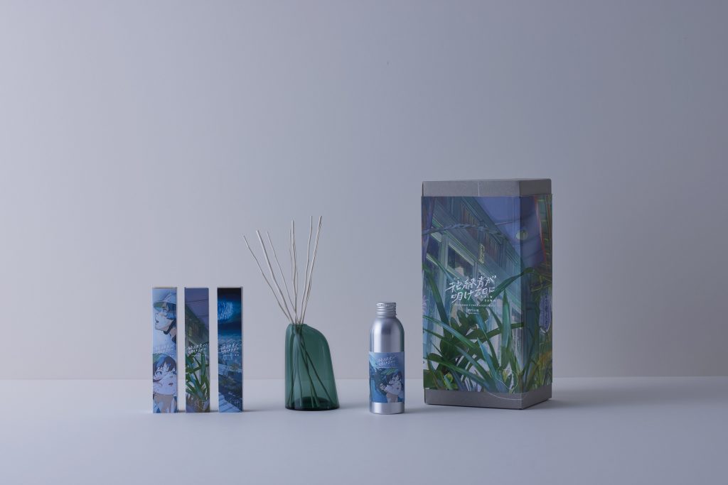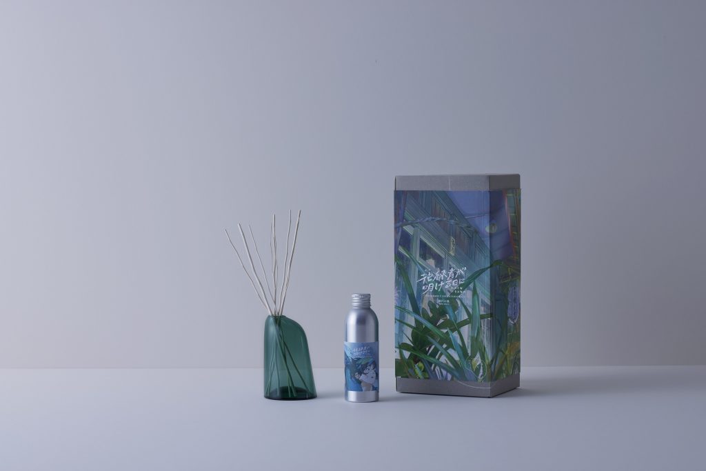 アニメーションながら写実的に描かれた豊かな緑と、主人公たちの心の葛藤をインスピレーションに、「暮らしの香り」がディフューザーの香りを製作。具象と抽象をゆるやかに紡ぐ四宮義俊監督の作品と共に、いまそこにある日常の美しさを表現した香りをお楽しみください。